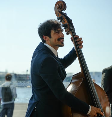 Whilst living in Chile he studied technique and jazz improvisation with the bass virtuoso Christian Gálvez and performed as a permanent member of the Metropolitan Salsa Orchestra directed by the pianist and composer Antoine Alvear.